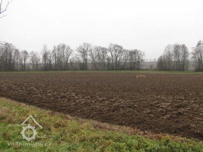 Osamocený Křemačovský mlýn měl vlastní náhon plus vypouštěná voda z mlýna v Podolíčku (1834).