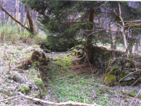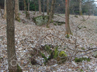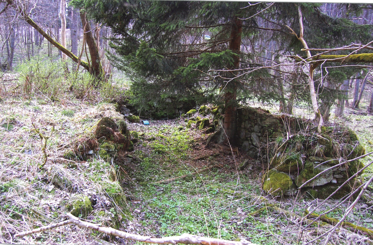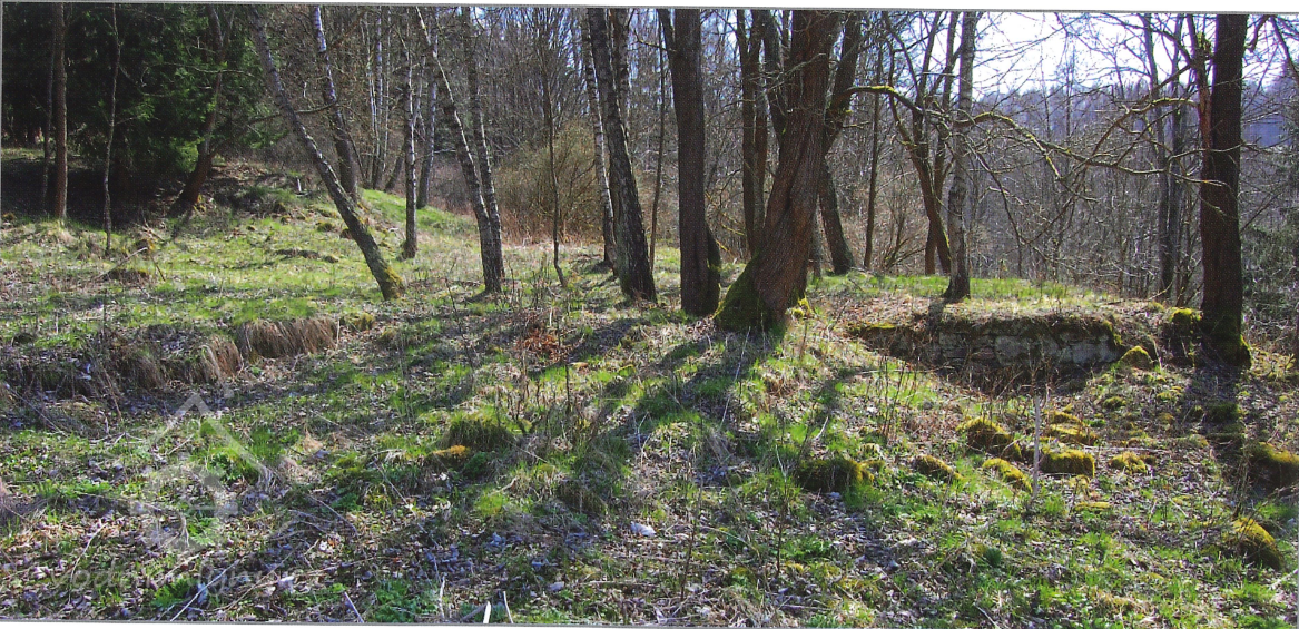 Zbutky mlýna (v popředí propadlé sklepy, v pozadí základy mlýnice), 2009, © Luděk Jaša