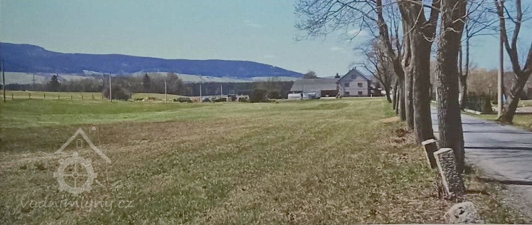 Na konci louky u ohrady vlevo stával dolní mlýn, usedlost přibližně uprostřed snímku je č.p. 30., 2026, © Václav Jetmar