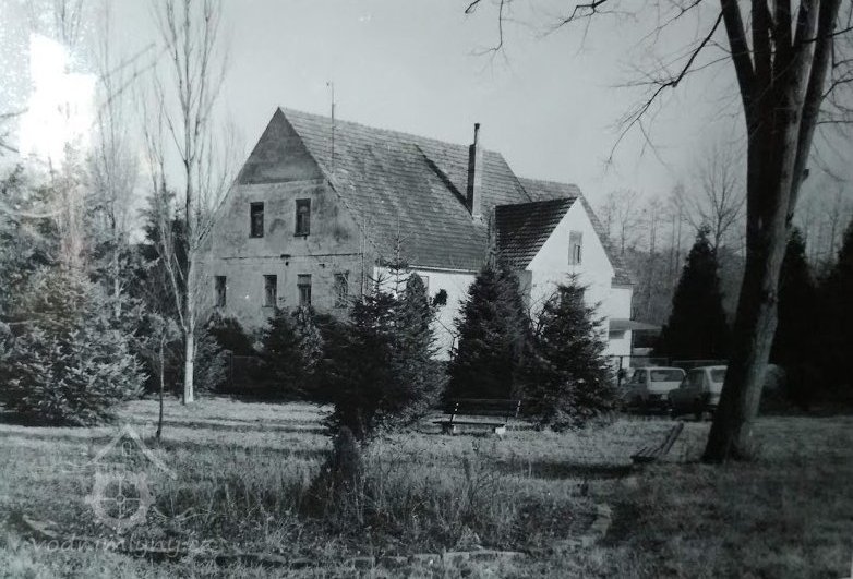 Průčelí (se stopami po upevnění erbu) a východní bok mlýna, 1982, © archiv manželů Vydrových)
