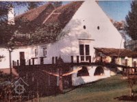 V levé části fota západní strana mlýna, souběžná s řekou/náhonem, v pravé části severní část, patrně se zanáškou, neuvedeno, © archiv manželů Vydrových