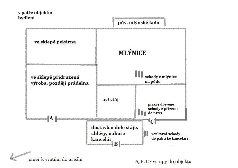 Dispozice objektu podle informací manželů Vydrových, 2018, © Renata Nováková