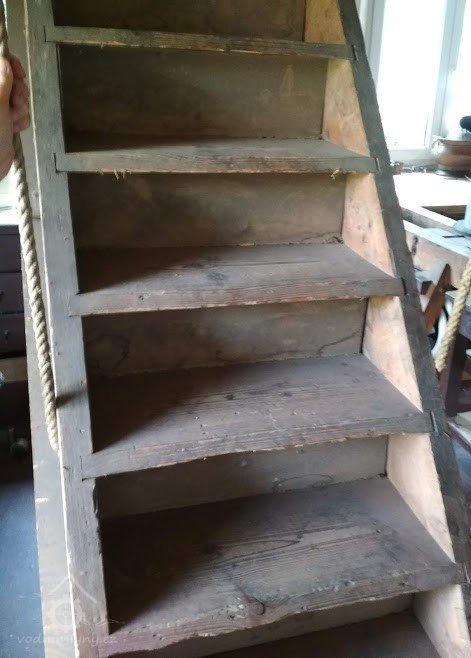 Původní schody z mlýnice na půdu, avšak posunuté a s konstrukcí na vytahování, 2018, © Renata Nováková
