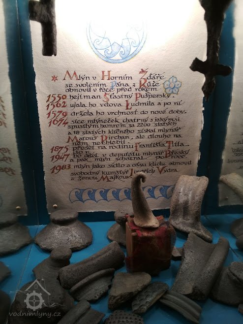 Malá výstavka s historií mlýna a předměty, které byly při úpravách mlýna nalezeny v okolí, 2018, © Renata Nováková