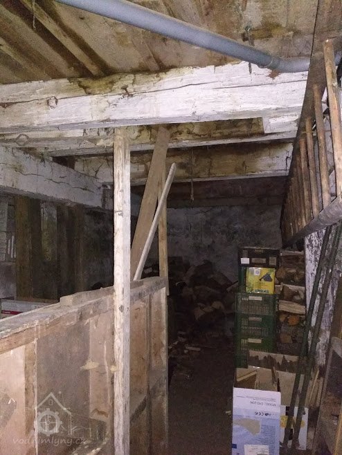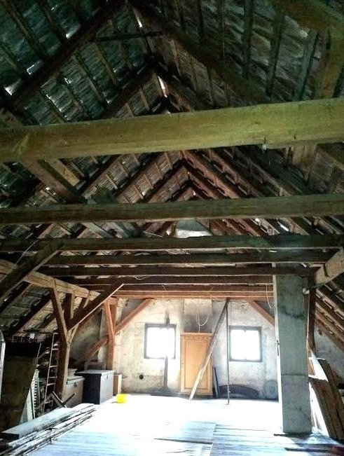 Půda: zachovaný starý krov mlýna, 2018, © Renata Nováková
