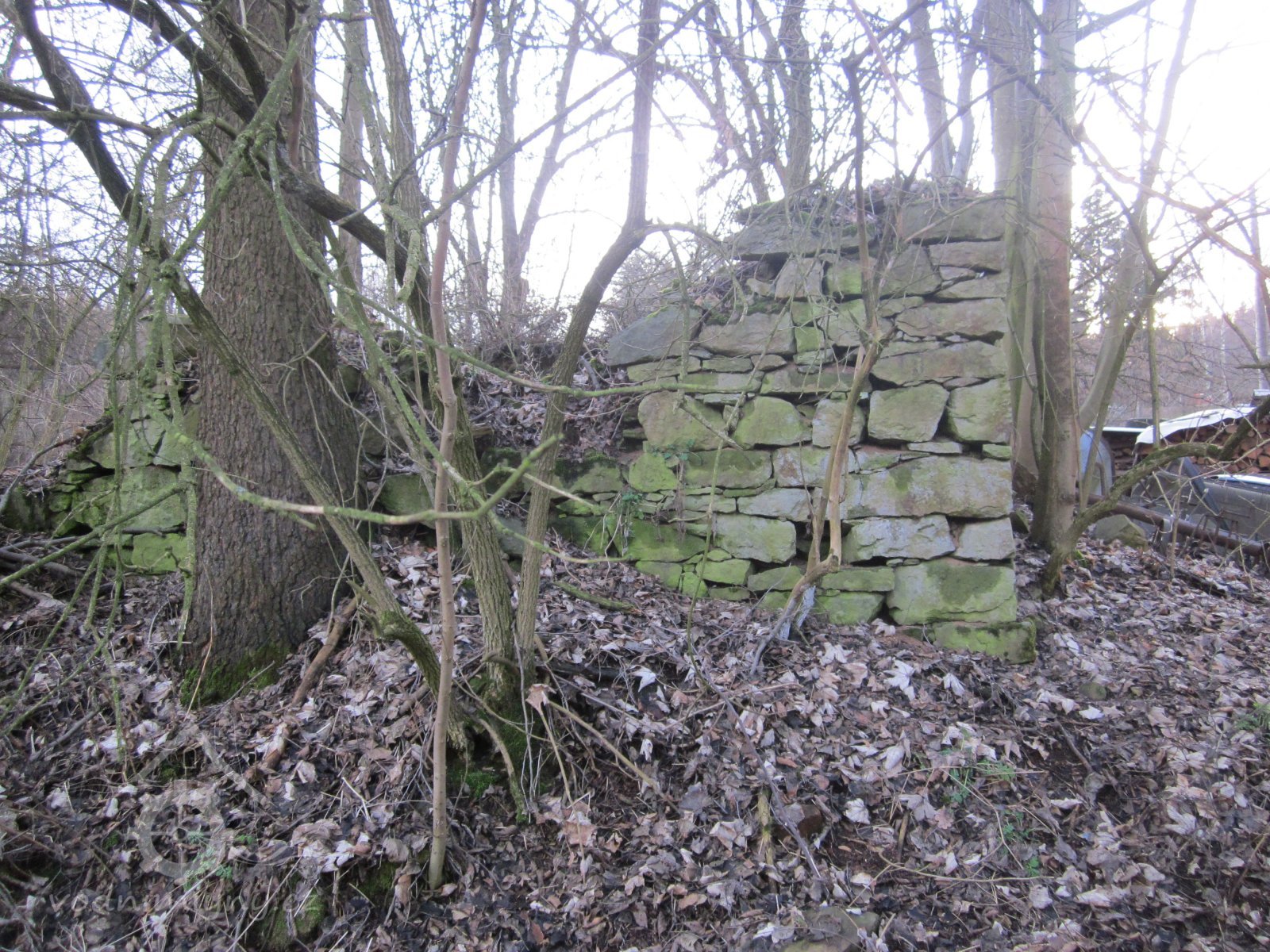 Zbytky zdiva mlýna od východu, 30.1.2016, © Eva48