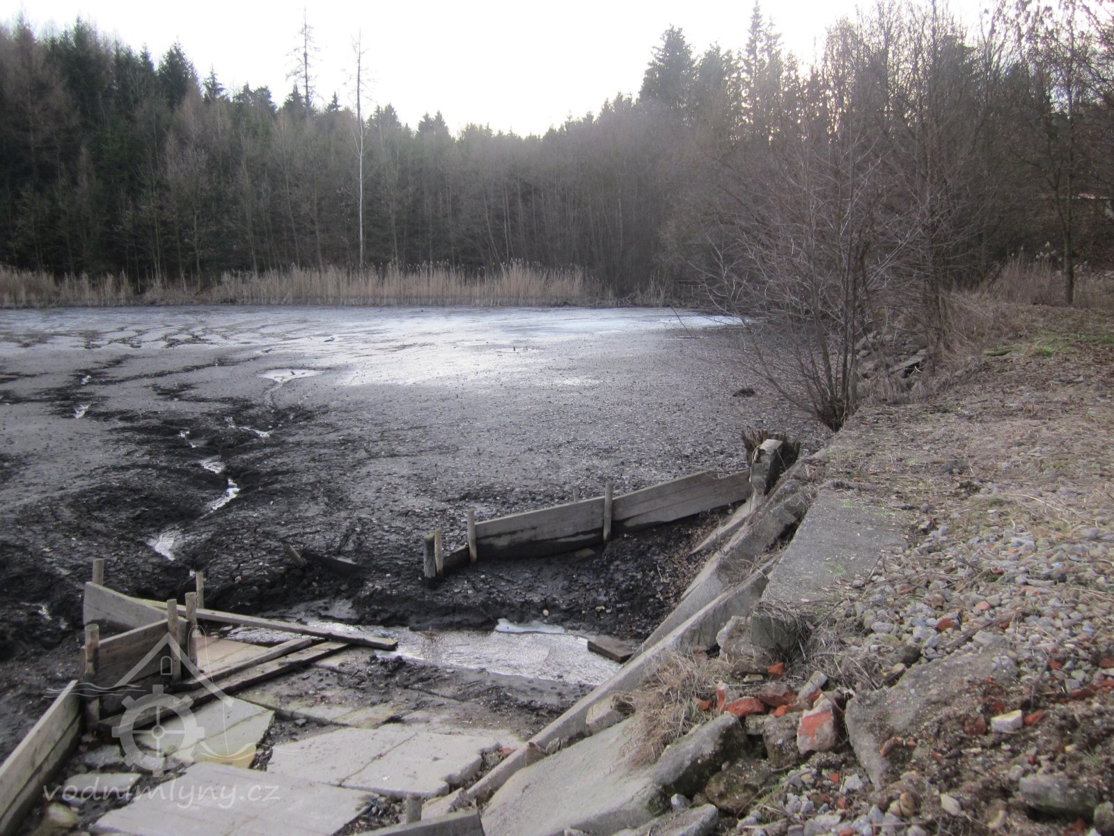 hráz a výpusť z rybníka na vantroky, 30.1.2016, © Eva48, (Prvky na obrázku: rybník)