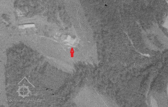 vlevo hráz s cestou, v prostoru mezi hrází a mlýnicí protékal náhon, VIII./2016, © Kozel