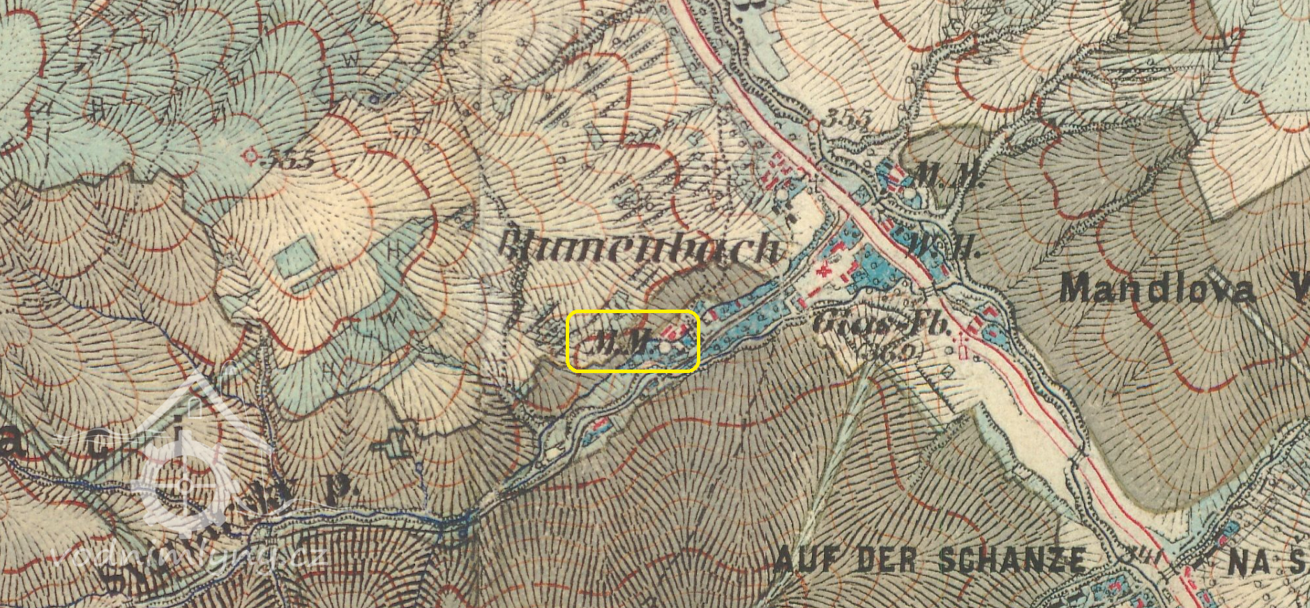Náhon dosud zachován, pokračoval dále ke sklárně.