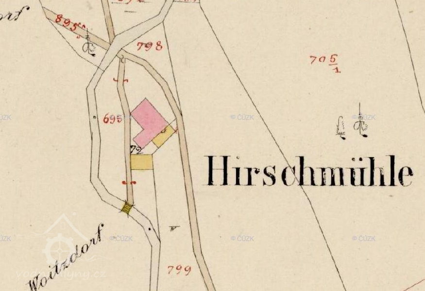 Jelení, Příkopní mlýn; Hirschmühle, Grabenmühle