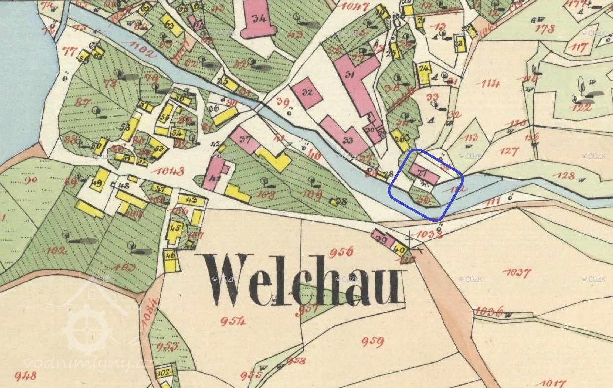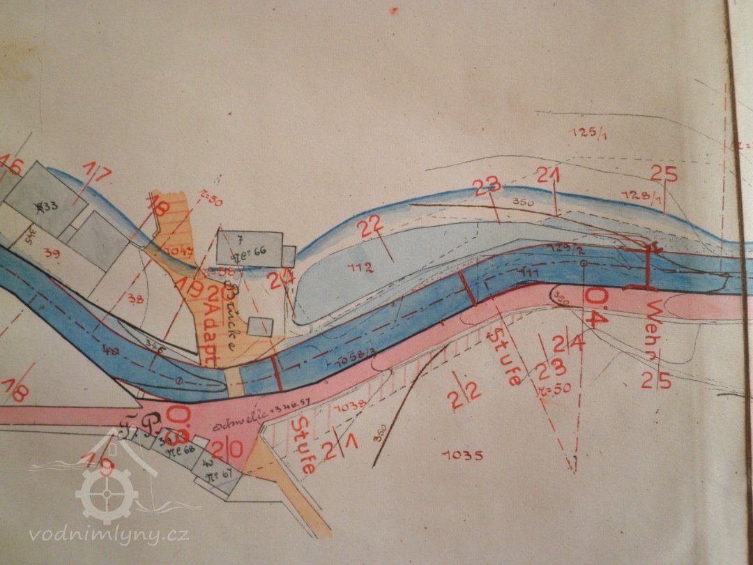 Jak je patrné z přiložených plánů v kopii, vodní kolo a hnací kola ze starého mlýna zůstala zachována a ani na vodním toku nebyla provedena sebemenší změna.