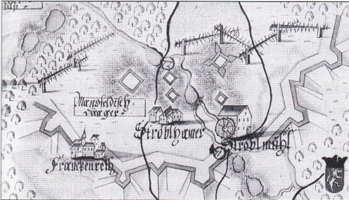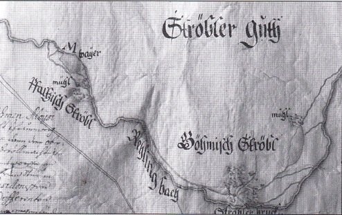 Skutečnost, že se Horní Střeble nacházela na německém území, dokládá mapa Aloise Kolbeho z roku 1766, kde je označena jako Pfaltzisch Ströbl - Falcká Střeble na rozdíl od Dolní - České Střeble.
