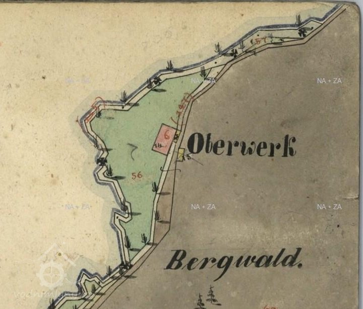 Objekt bez topografického názvu napojený na vodní náhon nebo doplněný značkou vodního provozu tu zaznamenávají historické mapy po celé 18. a 19. stoleti. Na mapě z roku 1838, která sloužila jako příloha vodních knih, je provoz označen názvem Oberwerk č.p. 10, dle názvu tu tudíž stával jeden ze sklářských zušlechťovacich provozů.
