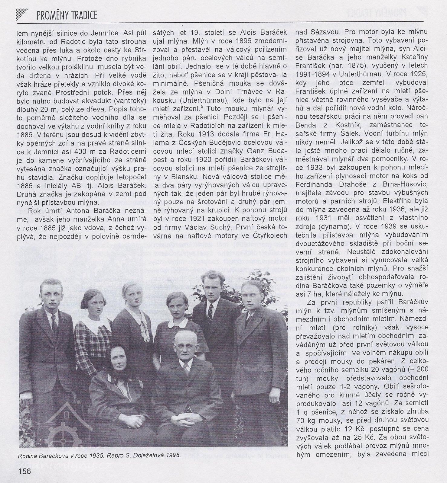 Baráčkův mlýn –v letech 1843 – 1849 provedl předek rodu Baráčků, který měl mlýn v Hardeku v Rakousku výměnu mlýna s radotickým mlynářem. Mlýn měl 2 složení, 2