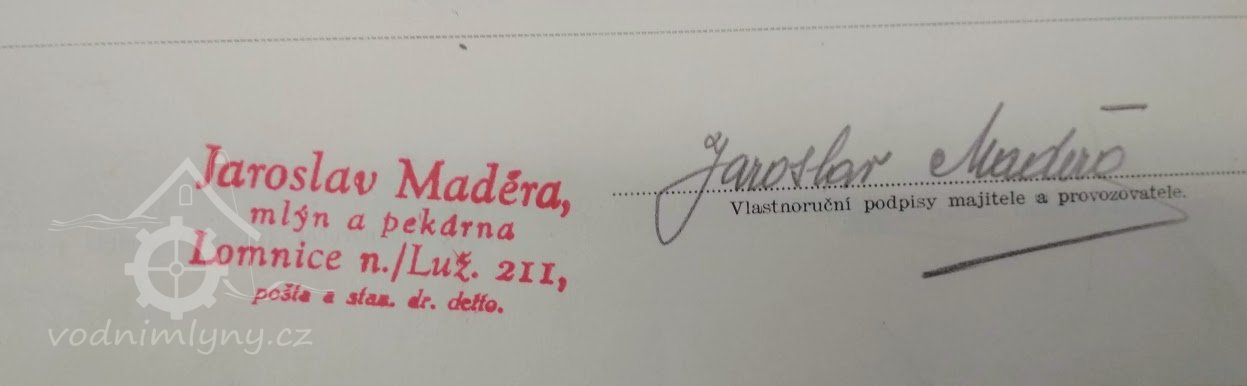 4.7.1933 předal mlýn svému synovi Jaroslavovi (*30.8.1900) a jeho ženě Marii Maděrovým.