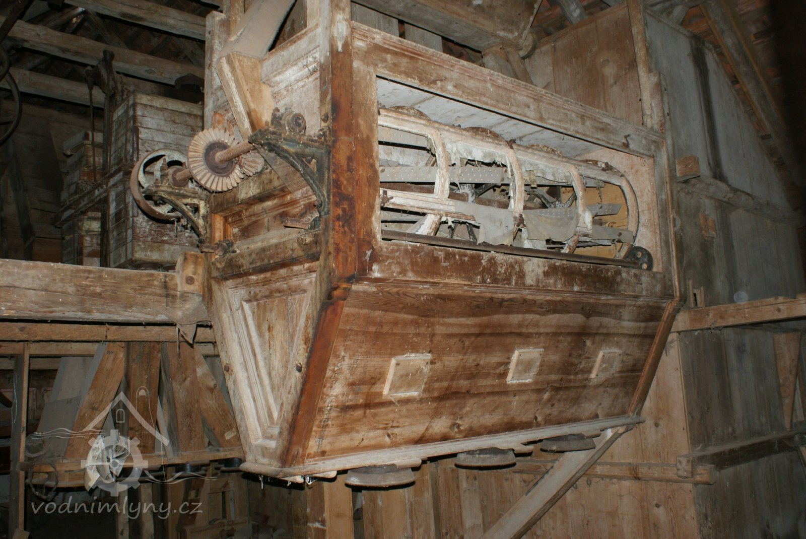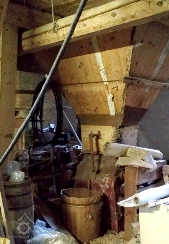 Zajímavé a méně běžné řešení vyskladňovacího otvoru v podobě tříkřídlých dveří, která přesně kopírují hlavní vstupní dveře do mlýnice v přízemí.