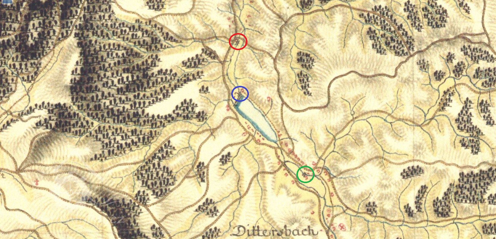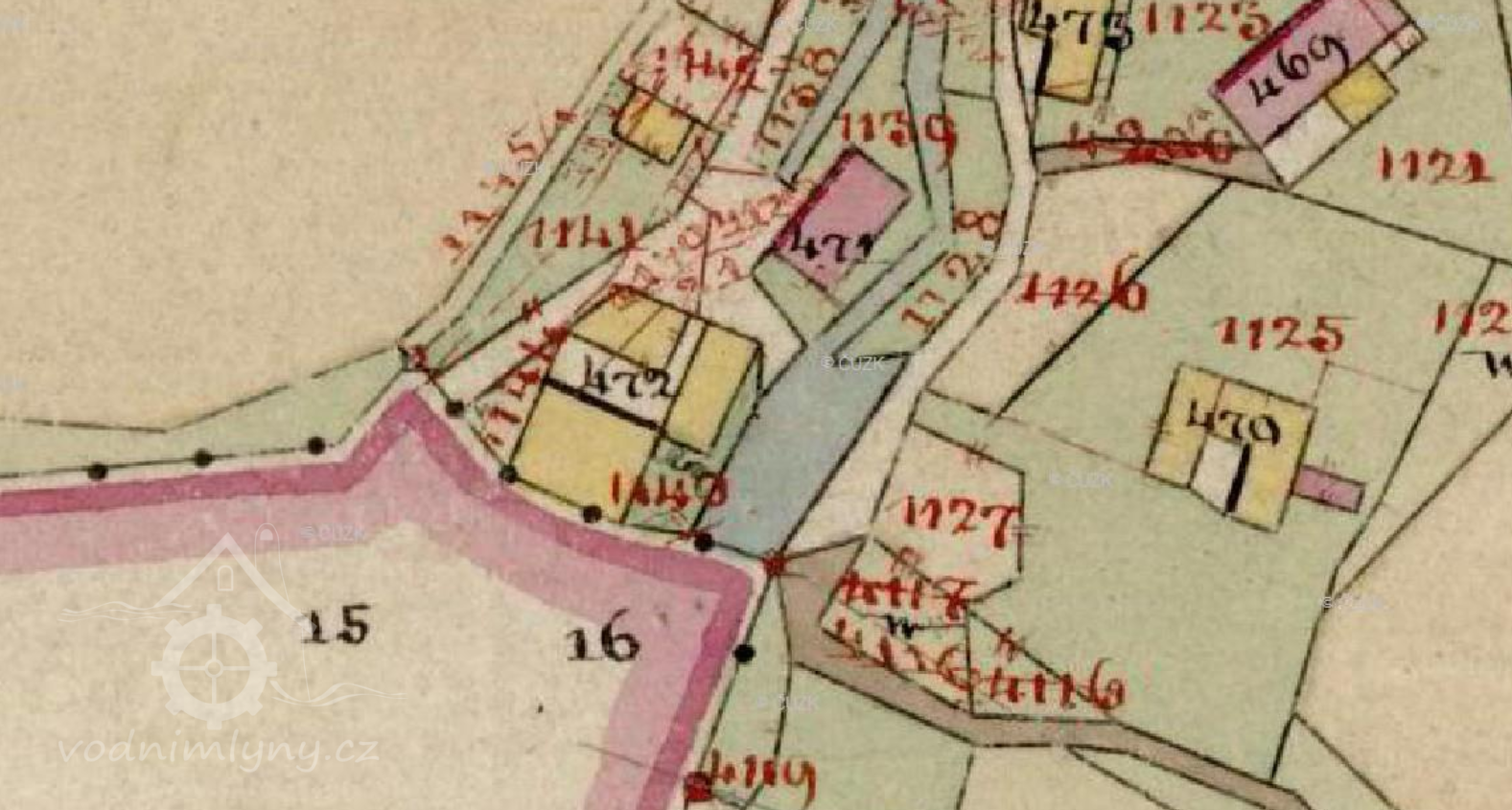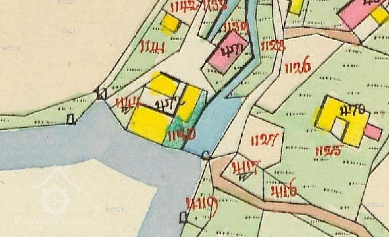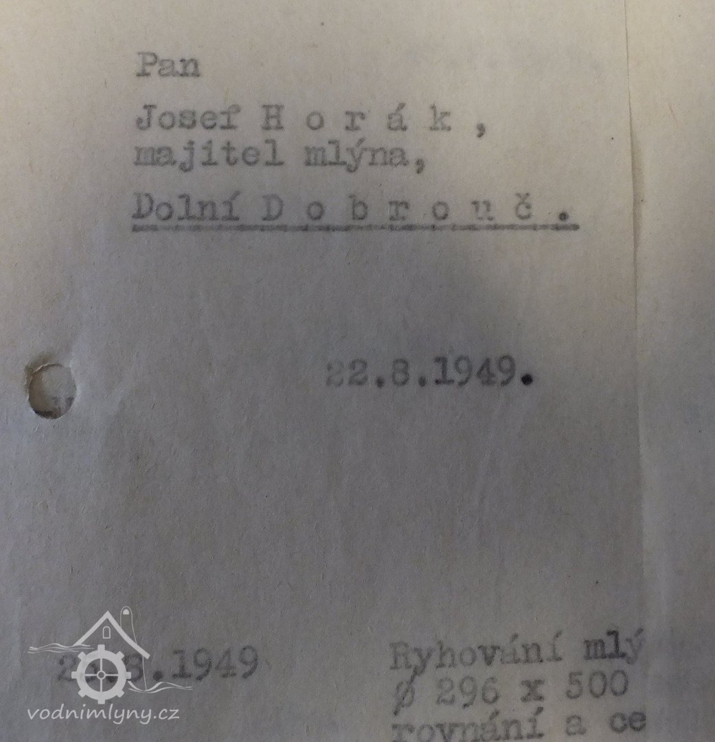 1651 Soupis poddaných podle víry - mlýn Jeho Milosti Knížecí: mlynář Jakub Hoffman (37 let), jeho žena Marjána (35), syn Jiřík (15), všichni poddaní katolíci