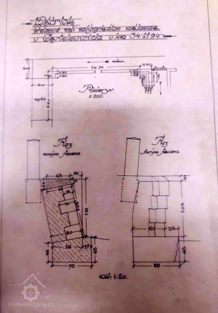 V r. 1930 zde byla Francisova turbína, průtok 1,02 m3/s, spád 2,72 m3/s, výkon 26,5 k-
