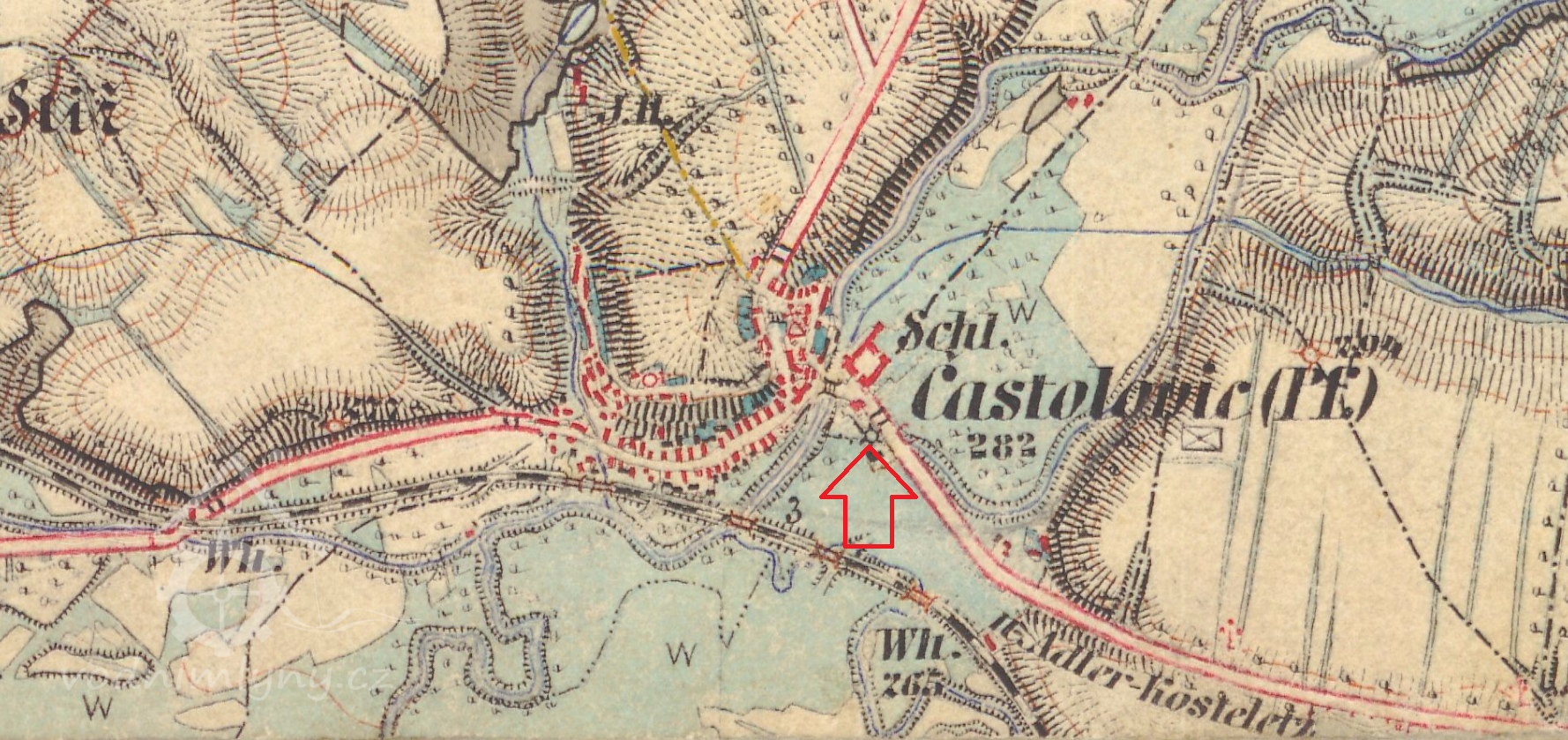 Panský mlýn z poč. 17. stol. stál v místě silnice, kvůli jejíž přeložce byl v r. 1975 zbořen.