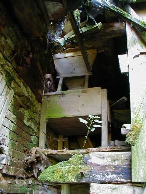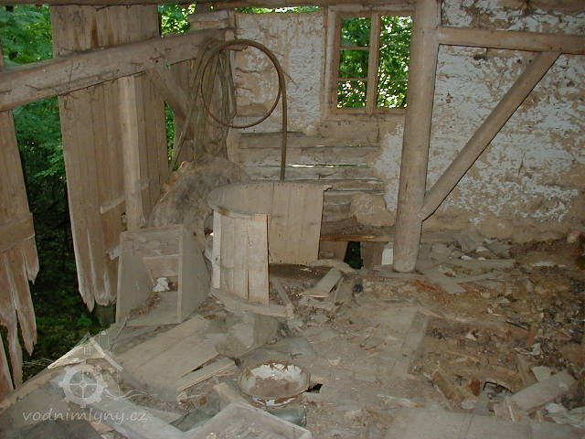 Před demolicí mlýna se ve mlýnici nacházela část polouměleckého složení v podobě doplněného hranolového vysévače a kapsového výtahu ke kamennému mlecímu složení. (RUr)