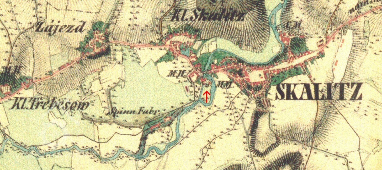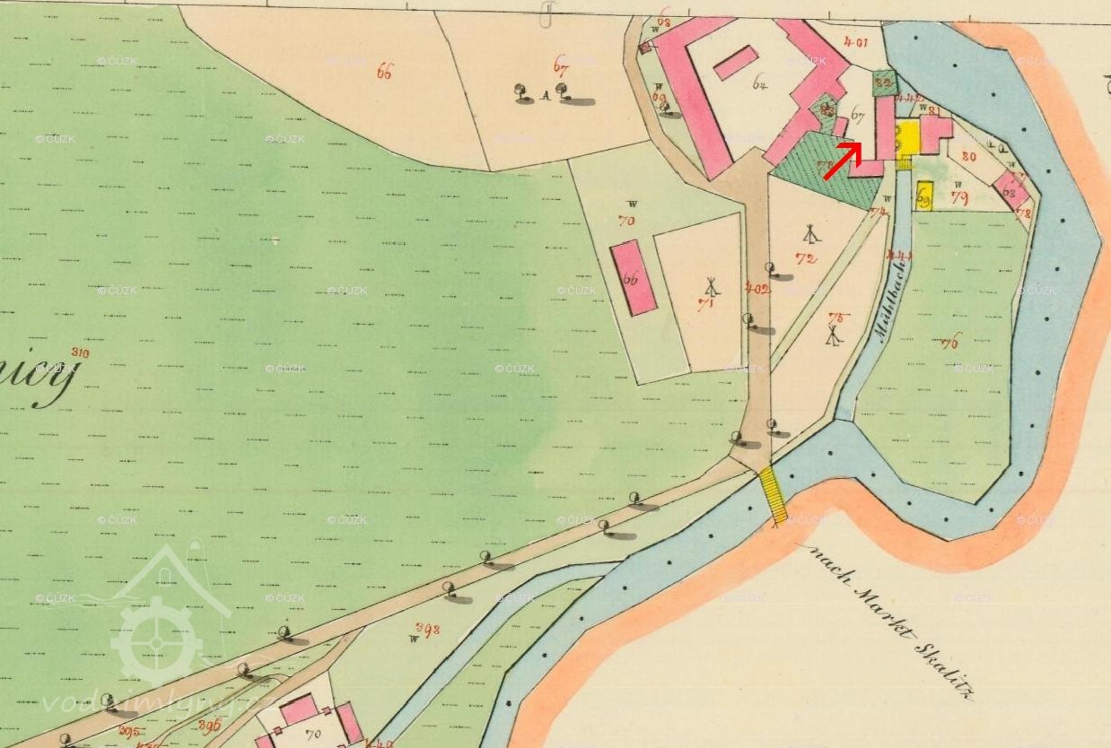 Mlýn o dvou kolech na pravém břehu Úpy,pod mostem do České Skalice, je zobrazen i na indikační skice z r. 1840 a na povinném císařském otisku. Tehdy byl jeho majitelem mlynář Hlouška.
