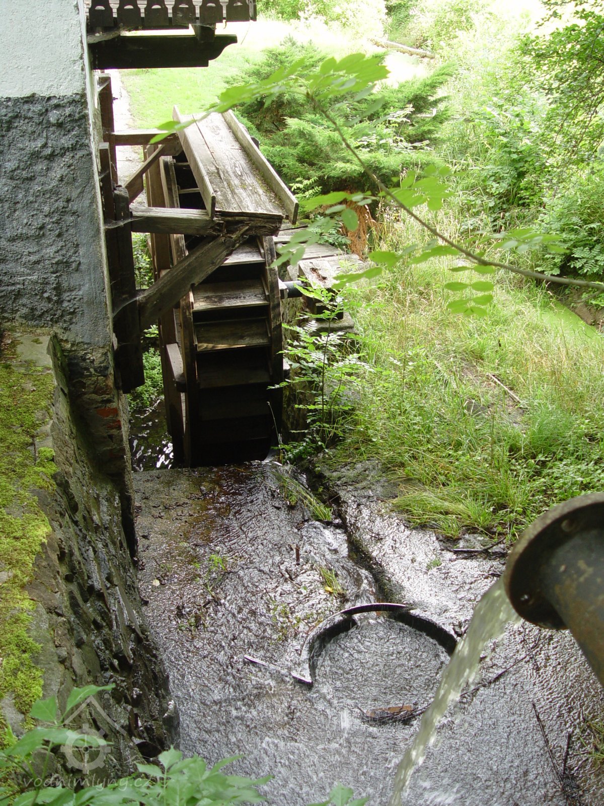 Dnes již atrapa vodního kola na vrchní vodu.