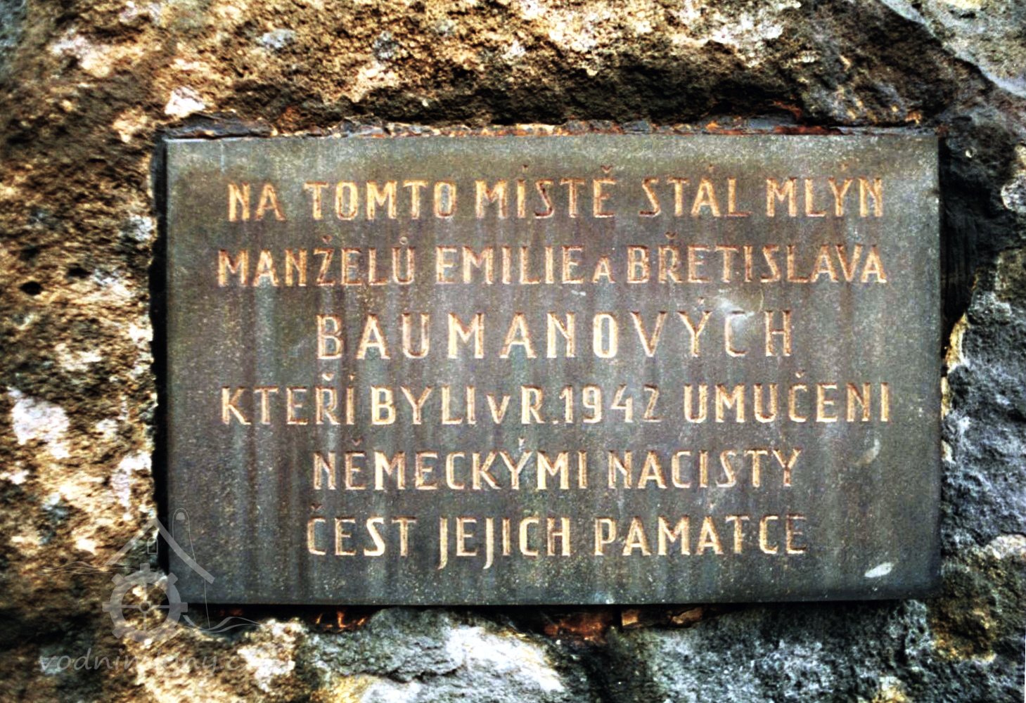 V roce 1942 (24.10.1942) byli popraveni majitelé mlýna Emílie a Břetislav Baumanovi německými nacisty za pomoc parašutistům skupin Anthropoid Jozefu Gabčíkovi a Janu Kubišovi, kteří se po seskoku u nedalekých Nehvizd v prosinci 1941 ukrývali v bývalých lomech v okolí. Na nároží bývalého mlýna je postaven pomník manželům Baumanovým. Více viz.