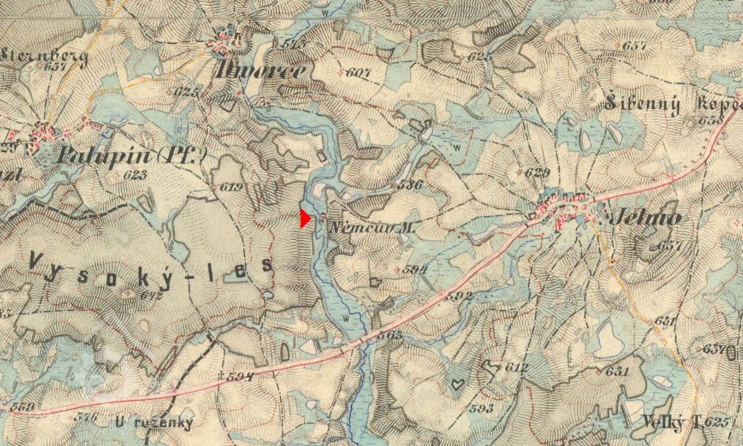Mlýn uveden při sčítání lidu v r.1869. První mapový záznam z r. 1877 pojmenovává mlýn jako "Němcův m."