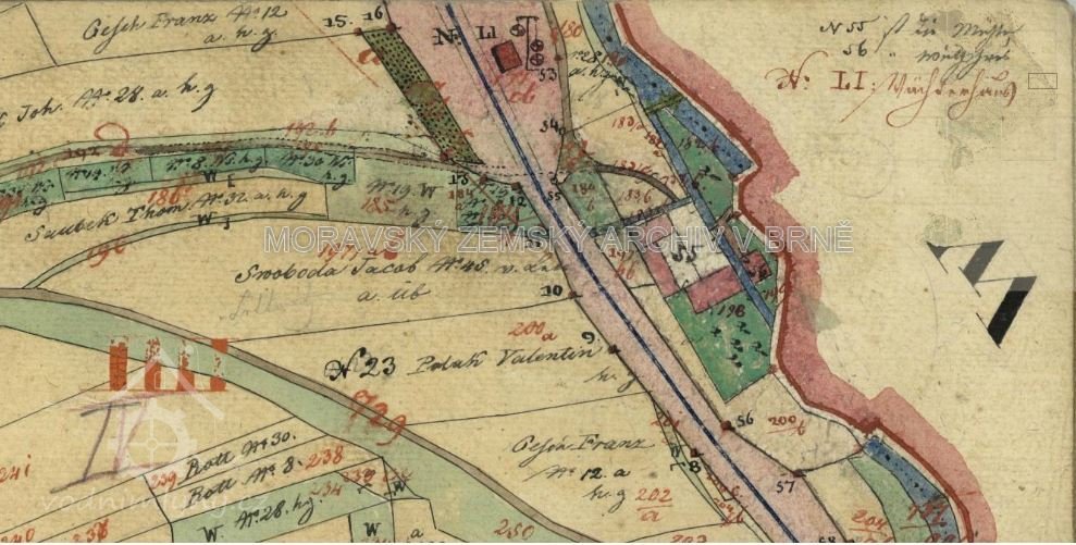 Mlýn je zakreslen pouze na indikační skice, na císařském povinném otisku chybí.