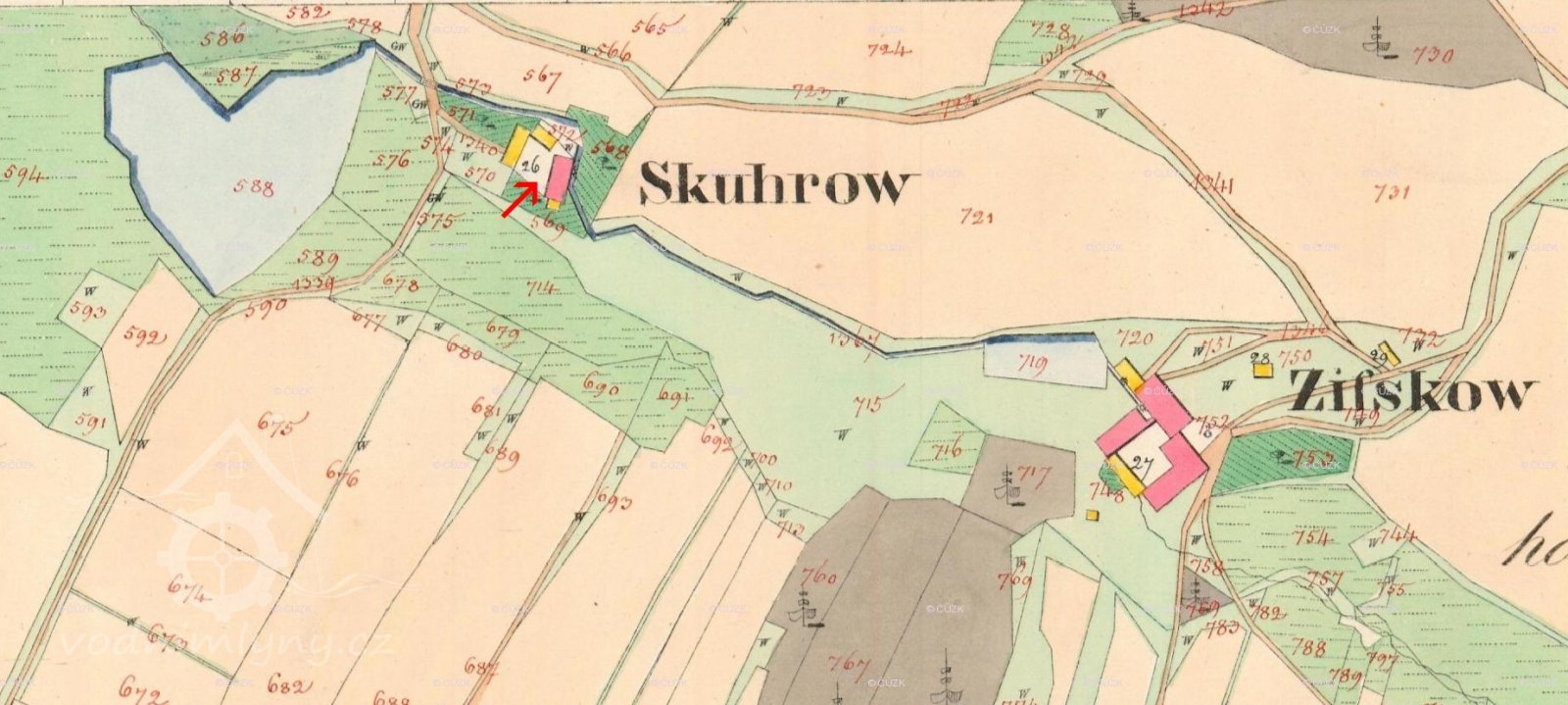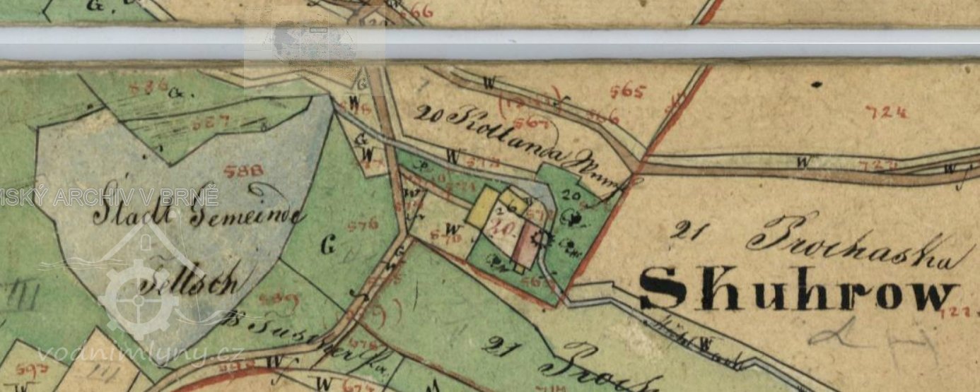 Popis1930: 1 kolo na svrchní vodu, hltnost 0,063 m3/s, spád 5,5 m, výkon 3 HP