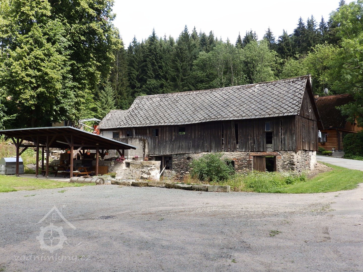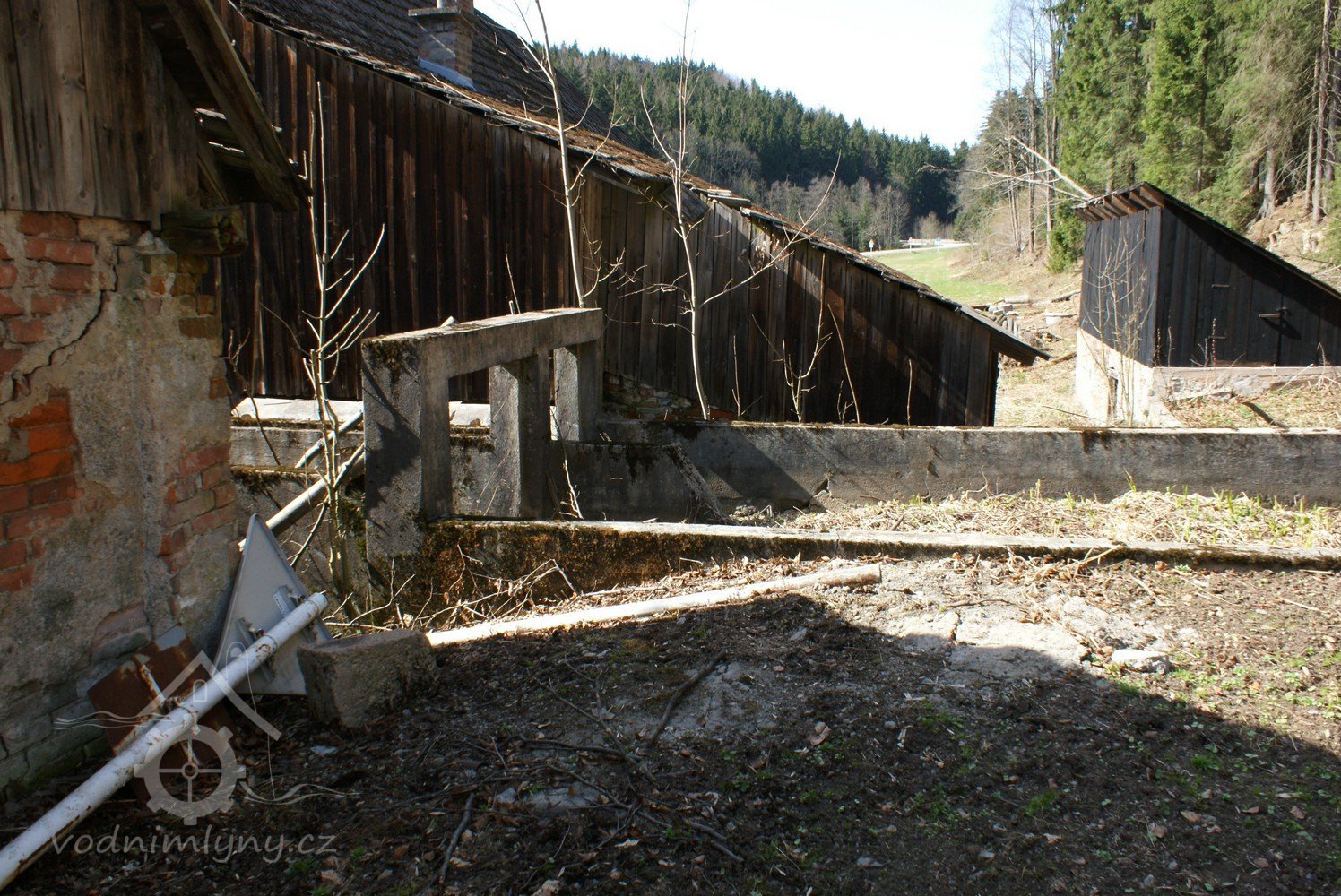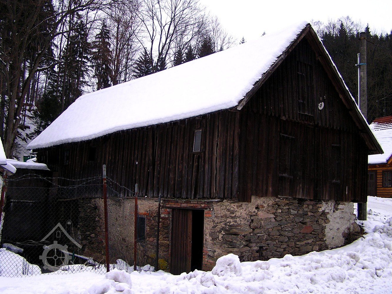 Pilnice se zděnou přízemní částí (podkolím) a s rámovou bedněnou konstrukcí prostor pro rámovovu pilu.