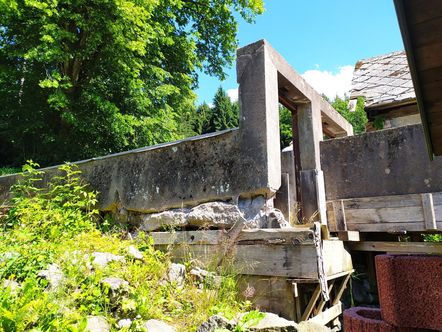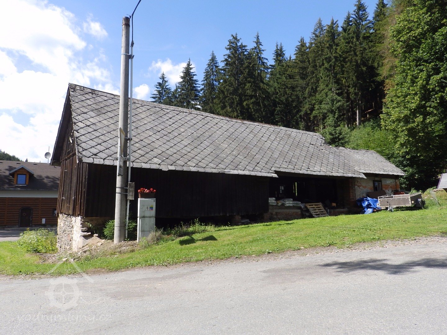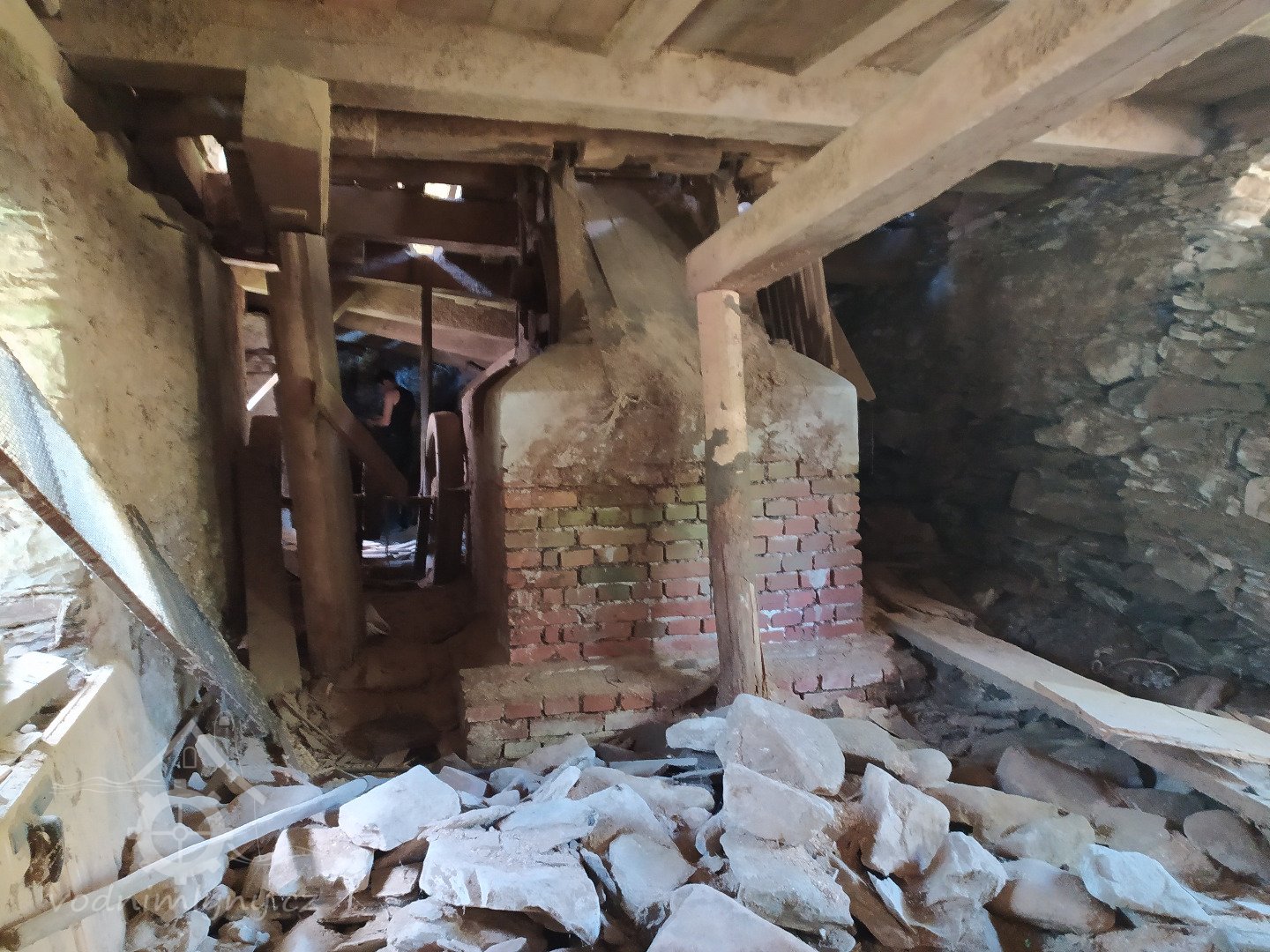 Pilnice se zděnou přízemní částí (podkolím) a s rámovou bedněnou konstrukcí prostor pro rámovovu pilu.