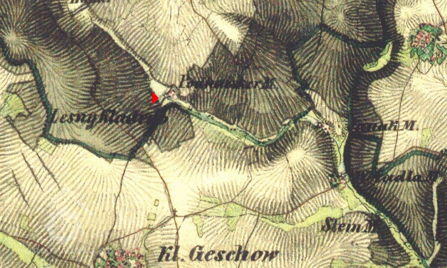 Mlýn leží uprostřed pod hrází rybníka č.parc 125. Je to český mlýn o jednom složení. Voda se přivádí z rybníka na kolo čtvercovou rourou z fošen položenou ve hrázi 0,31 m širokou a 0,215 m vysokou, která se na straně rybniční uzavírá stavítkem. Kolo je na vrchní vodu a měří 5,17 m v průměru o šířce věnce 0,21 m. Pevný bod stanoven na severním konci hráze ve vzdálenosti 2 m od jižního průčelí hájovny. Pevný bod se skládá ze žulového sloupu 1,3 m dlouhého, 25x25 cm do čtverce, se dvěma rameny 1 m dlouhými, 16x16 cm silnými, do země zasazeného a zazděného. Hlava sloupu má písmena F L a pod nimi letopočet 1894. Do hlavy sloupu je zaražen měřící hřeb do čtverce 5 cm, jenž tvoří pevný bod.