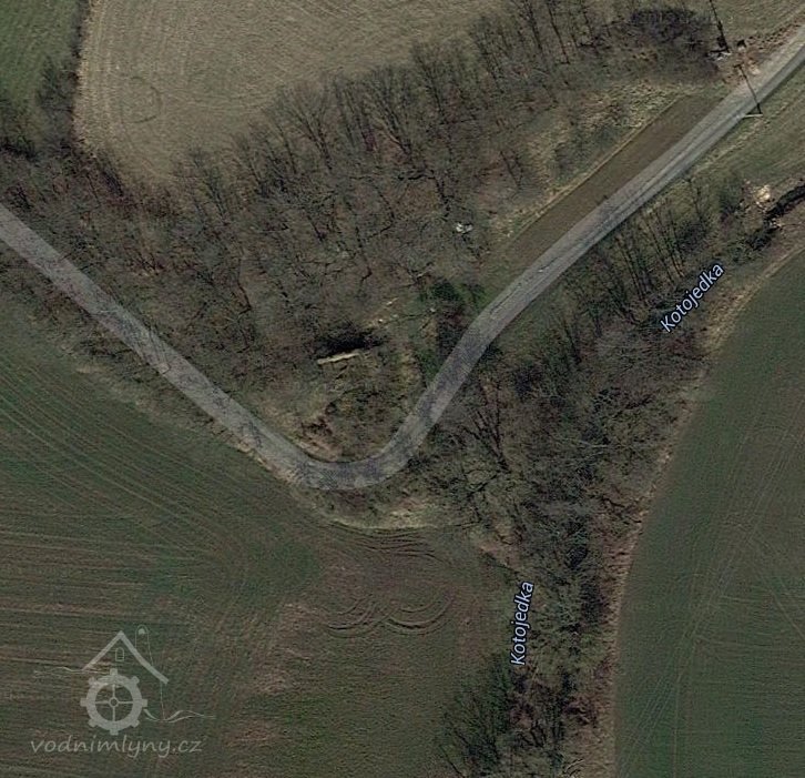 Potok Kotojedka se nazýval Olšinka. Mlýn měl 2 kola na vrchní vodu. (HŠ)