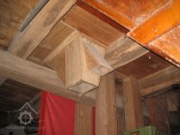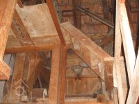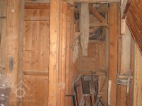 Podstřeší jižního dílu severní části dnešní budovy - vlevo zeď oddělující severní a střední část dnešní budovy, květen 2016, © Dušan Žatecký