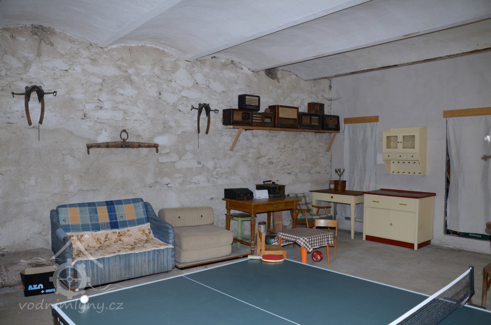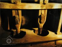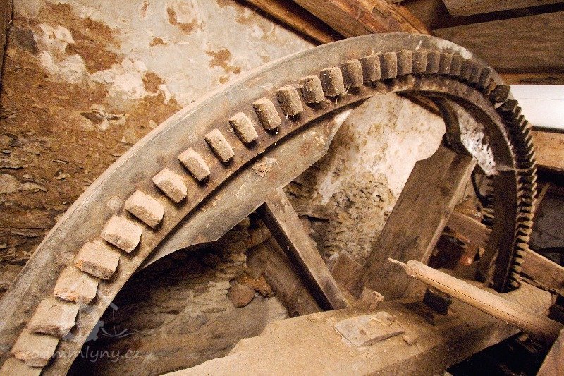 Archaická mlýnice v prostoru dolní podlahy: hranice, paleční kolo, moučnice se žejbrováním, hřídel vodního kola s hejblaty pro pohon tyčové stoupy, která se zde vzácně zachovala. Chybí mlecí podlaha.