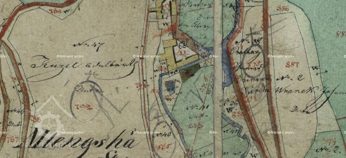 Počet a druh vodních motorů: 1 kolo na spodní vodu (?)