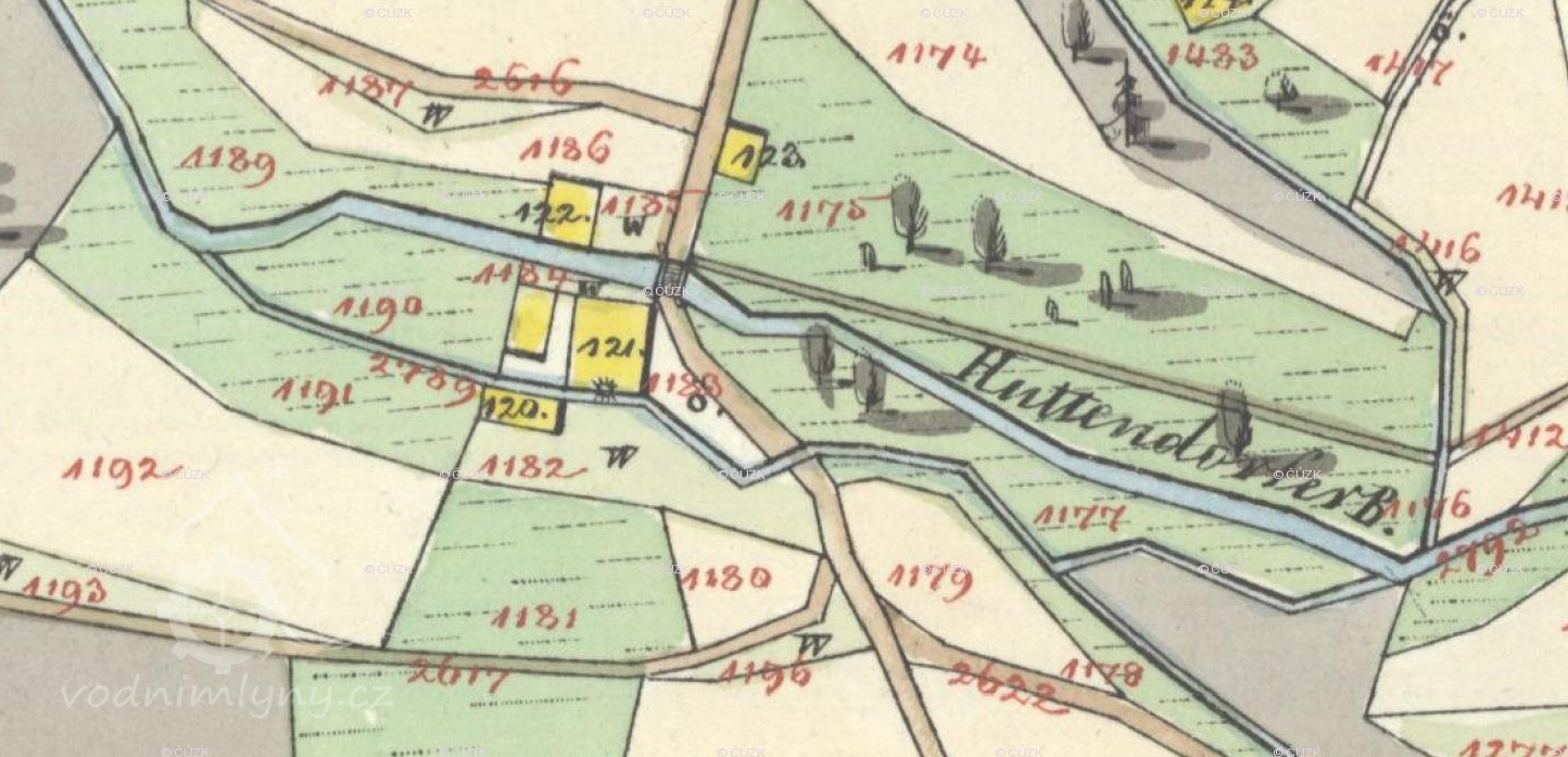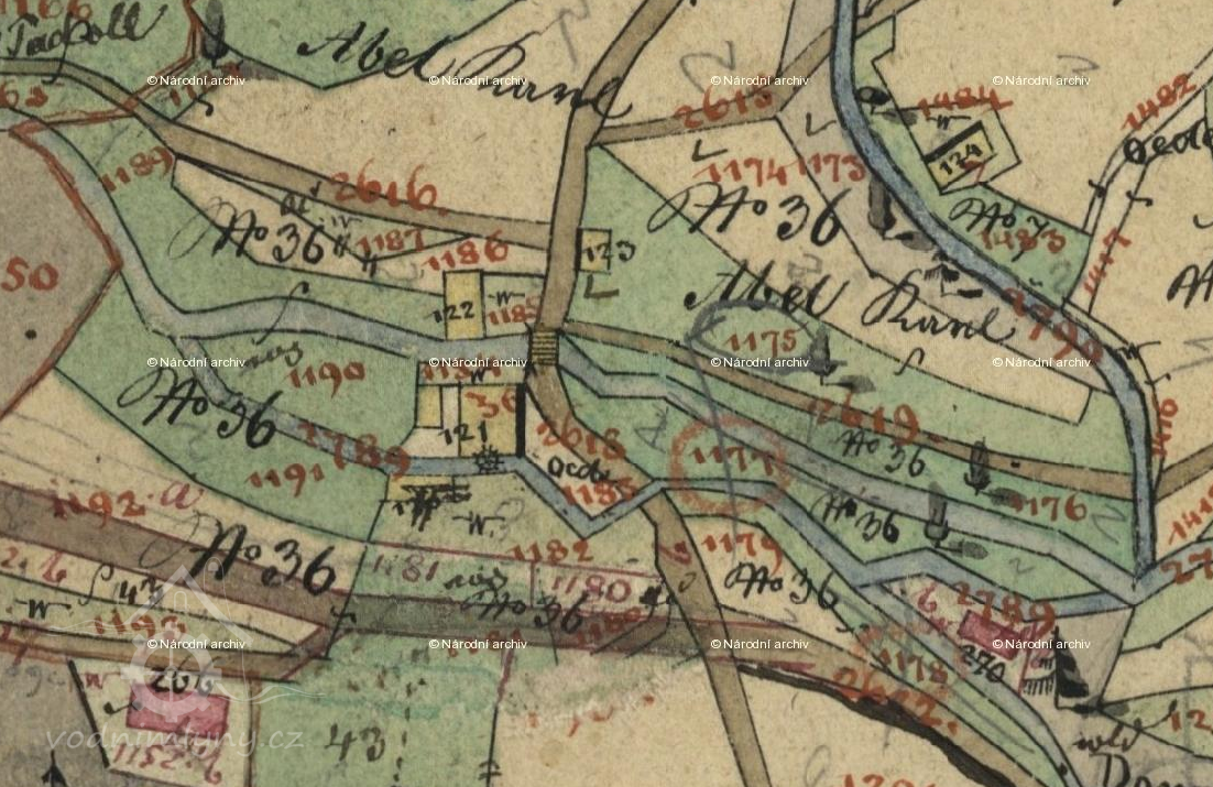 1795 mlýn s jedním složením a pilou, k mlýnu náleželo 19 1/2 strychu polí, 6 strychů luk a 13 1/2 strychu pastvin. z čehož majitel Ignác Abel platil vrchnosti 30 zl. 30 kr. ročně a nebyl povinen pro vrchnost řezat zdarma.