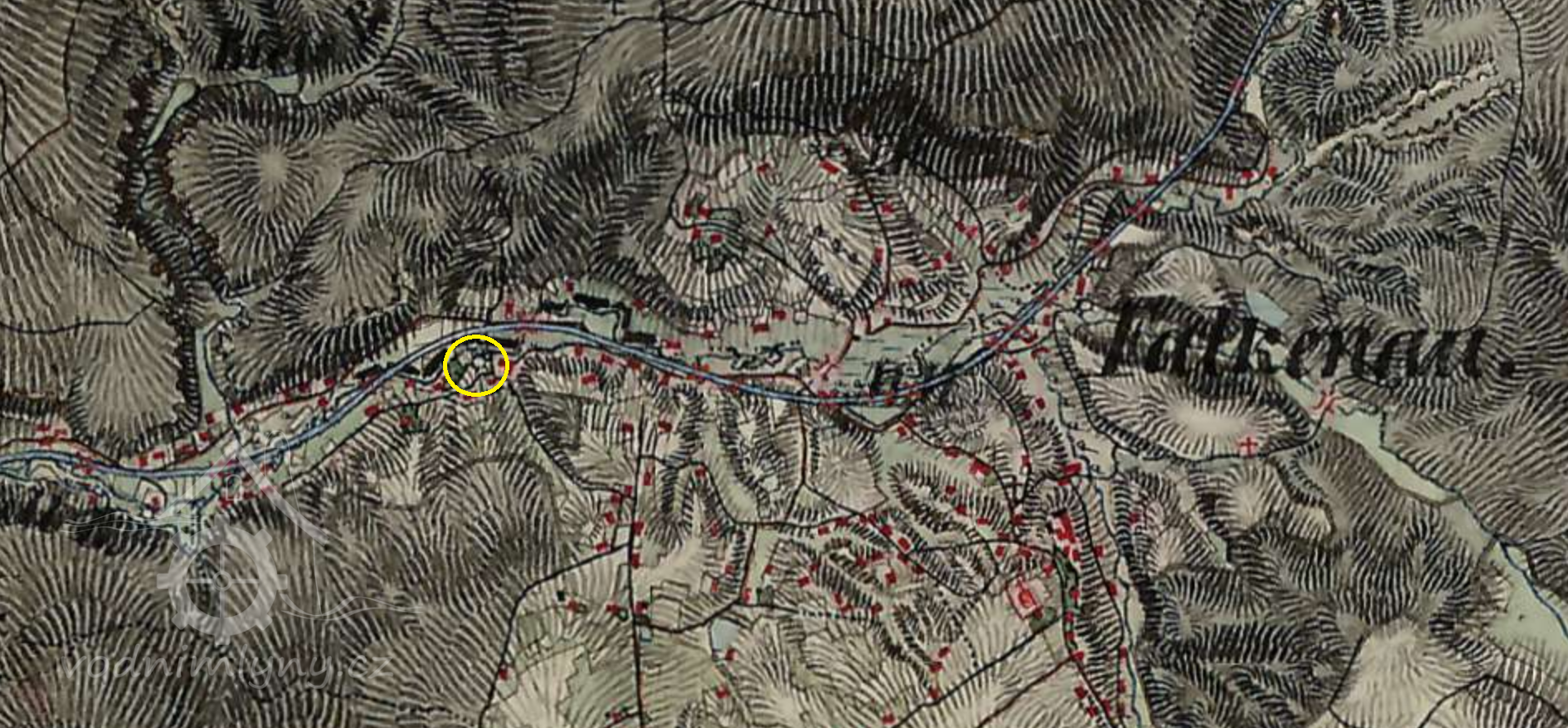 Ve Falknově existovala vrchnostenská pila z r. 1670. Voda k ní byla přiváděna z řeky Kamenice. Náhon začínal právě poblíž hutě a pod pilou přes řeku Kamenici byl most. Tato pila byla v roce 1796 prodána pilaři Antonu Münzelovi, původem z Krásné Lípy. Ten pilu v roce 1798 přestavěl na obilný mlýn, který pak měl právo nejen mlít obilí, ale i provádět výčep vrchnostenského piva.