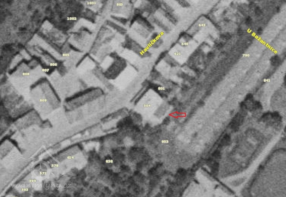 Vodní kniha z roku 1874: mlýn měl 2 složení, 2 vodní kola o průměru 390 cm a 374 cm, která poháněla ještě jahelku a krupník.