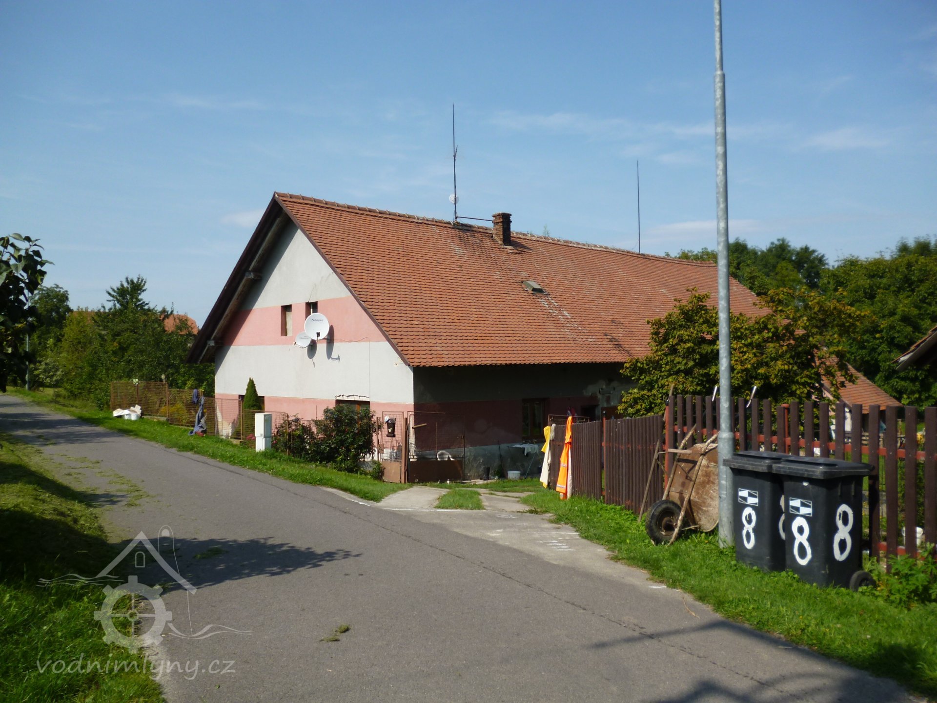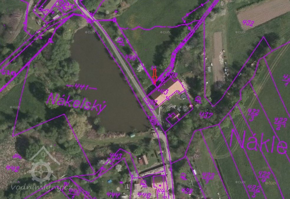 Mlýn stojí pod hrází rybníka, z něj tekla voda stavidlem na kolo na vrchní vodu.
