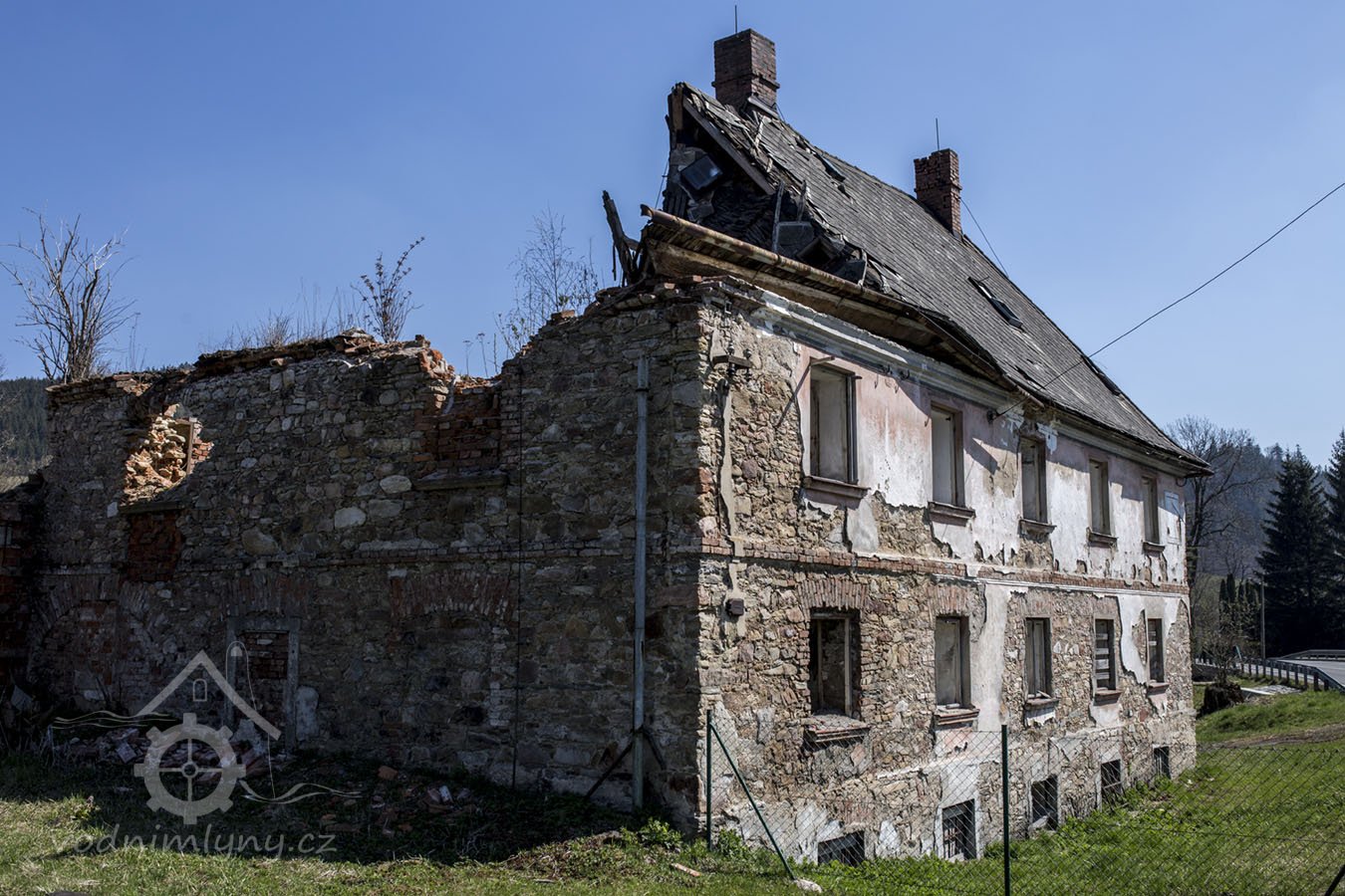 Rozsáhlý areál s dominující patrovou obytnou mlýnicí na půdorysu L, dnes již napůl zřícenina.