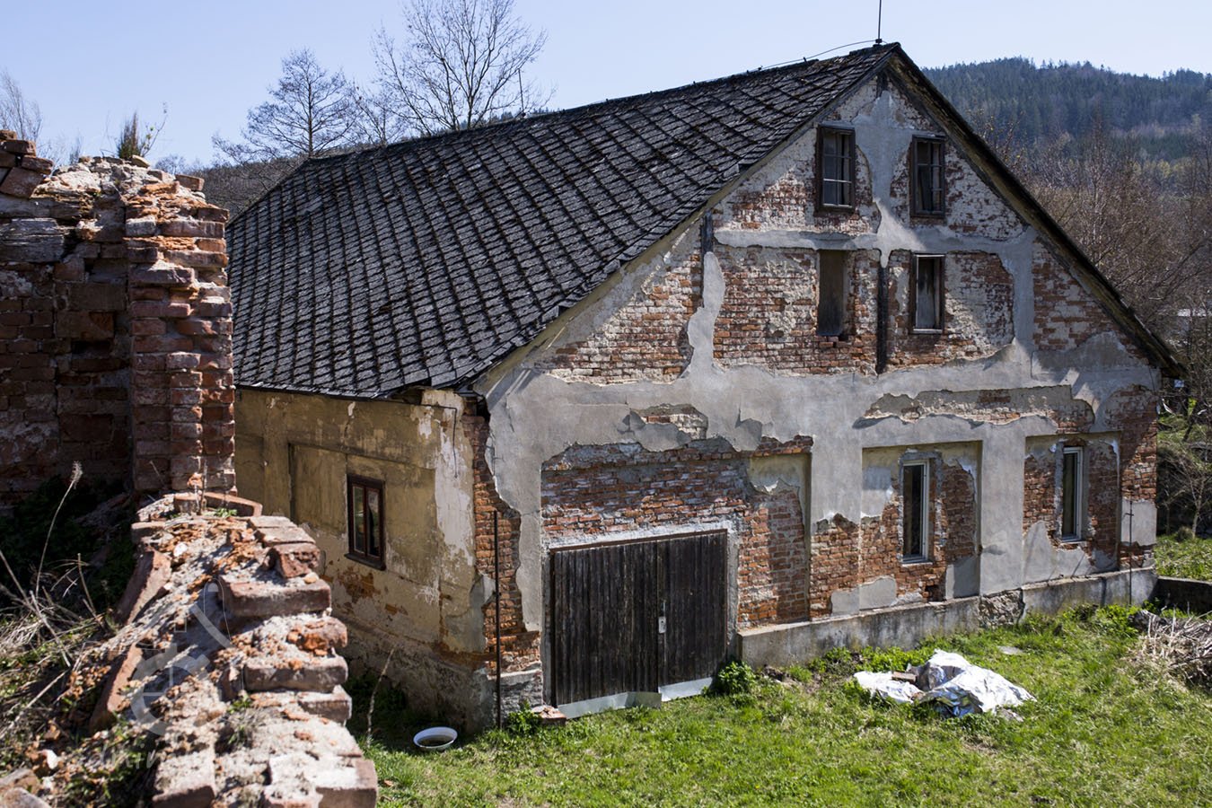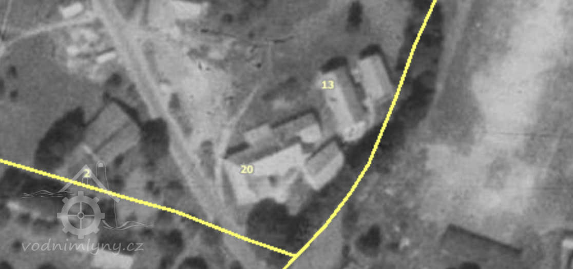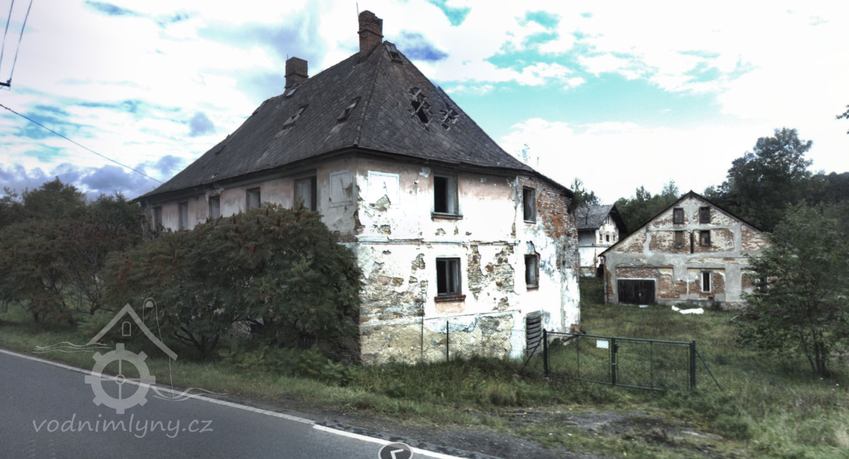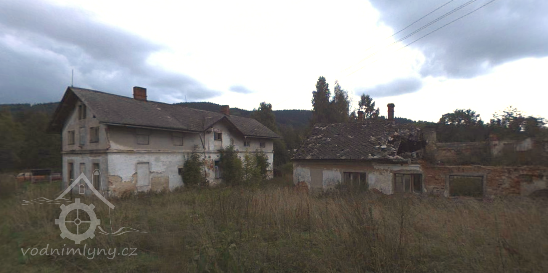 Silně zdevastovaný velký mlýn na výběžku katastru Mlýnického Dvora.