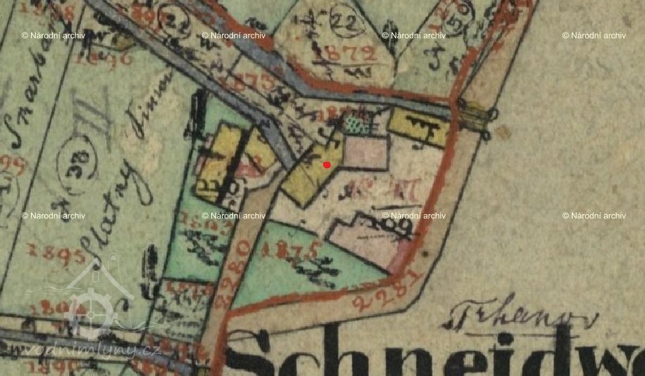 1880 - majitelem je Václav Pavlík *1808 Šnajberk, zřejmě bratr Františka Pavlíka, nájemníkem mlynář František Duffek *1830  ve Starém Dvoře, s rodinou
