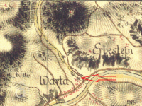Mlýn č.p. 1. ve Stráži nad Ohří byl v současné pozici postaven zřejmě v polovině 19. století. Na indikační skice i císařském otisku stabilního katastru z roku 1842 jsou zde zachyceny drobnější objekty vyznačené žlutě (ze spalného materiálu), rozmístěné do třístranného dvora. Samotný mlýn je vyznačen až za mlýnským náhonem na parcele č. 81/2, patřící dnes k č.p. 2.