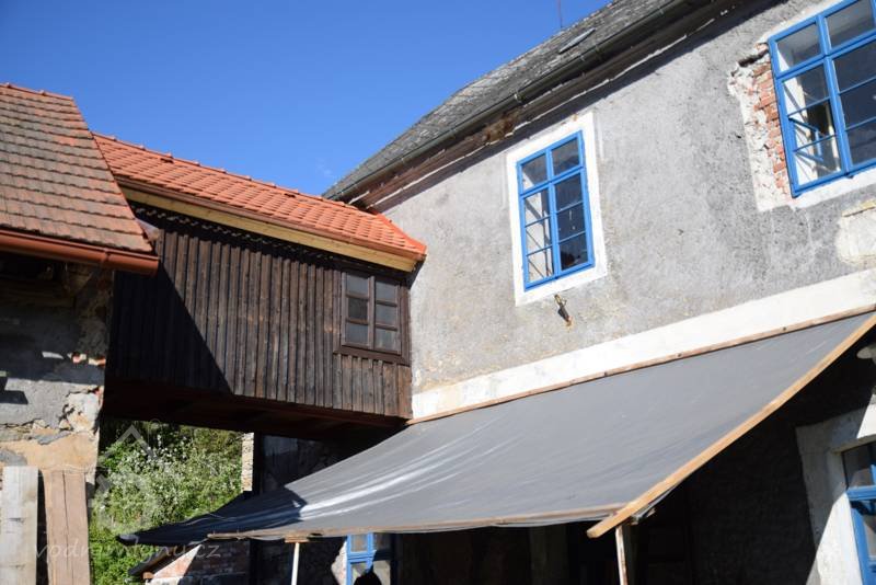 Severovýchodní průčelí je čtyřosé, v severní části jsou na vykonzolované podestě zasazena dřevěná vrata na pojezdový mechanismus a ve střední části tři obdélná okna opatřená dvoukřídlými výplněmi zasazenými před špaletu, členěnými na šest tabulek. Další vstup do objektu je situován v severním štítovém průčelí směřujícím k domu a mlýnu. Samostatný vstup je veden do suterénu i do patra. Obdélné vstupy jsou osazeny dřevěnými jednokřídlými dveřmi svlakové konstrukce s dlouhými pásovými závěsy ukončenými liliovitými výběžky. Jihozápadní průčelí podél vodního náhonu má v podřímsí šest kapes, které zřejmě mohly sloužit pro osazení dřevěné pavláčky. Ve střední části je prolomen drobnější obdélný nakládací otvor uzavřený dřevěnými vrátky. Sedlová střecha je krytá z jižní strany pálenými taškami bobrovkami, ze severní strany taškami drážkovkami a jižní část z vlnitého eternitu. V severní části je pod přesahem střechy zasazen drobný holubník o třech otvorech. Prostor podkroví je zpřístupněn z hlavní obytné, mlýnské budovy můstkem opláštěným dřevěným bedněním, prosvětleným dvojicí obdélných oken s dvoukřídlými výplněmi, členěnými na šest tabulek.