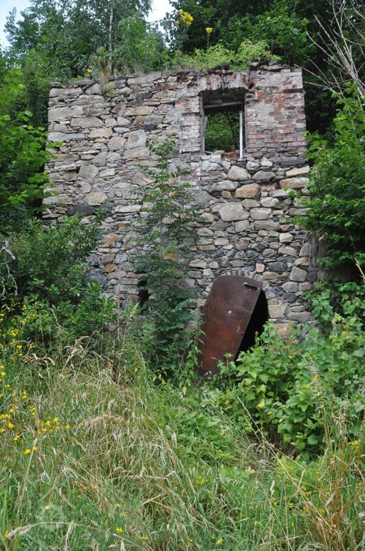 Jižně u mlýnského náhonu a mlýnu se ještě zachovalo torzo drobného dvoupodlažního objektu, zřejmě špýchárku na čtvercovém půdorysu. Obvodové konstrukce jsou vyzděny z lomového zdivá, s cihelnou dozdívkou obdélného okna v patře. V přízemí zapuštěném do terénu se nachází drobný sklípek. Vstup je situován v pravé části jihovýchodního průčelí, otvor je ukončen půlkruhově s cihelnou dozdívkou. Opatřen je dřevěnými vraty svlakové konstrukce s dlouhými závěsy, z čelní strany jsou pobyty plechem a zavěšeny na háky. Prostor sklípku je zaklenut valenou klenbou z lomového kamene, nízko u země je drobná, segmentem ukončená nika. Interiér je osvětlován drobným štěrbinovitým okénkem po levé straně vstupu.