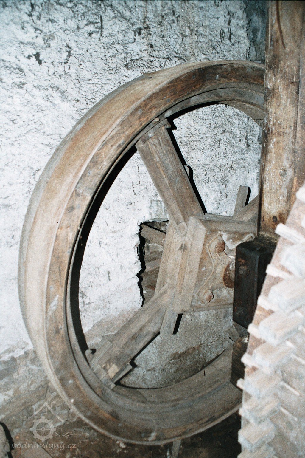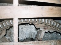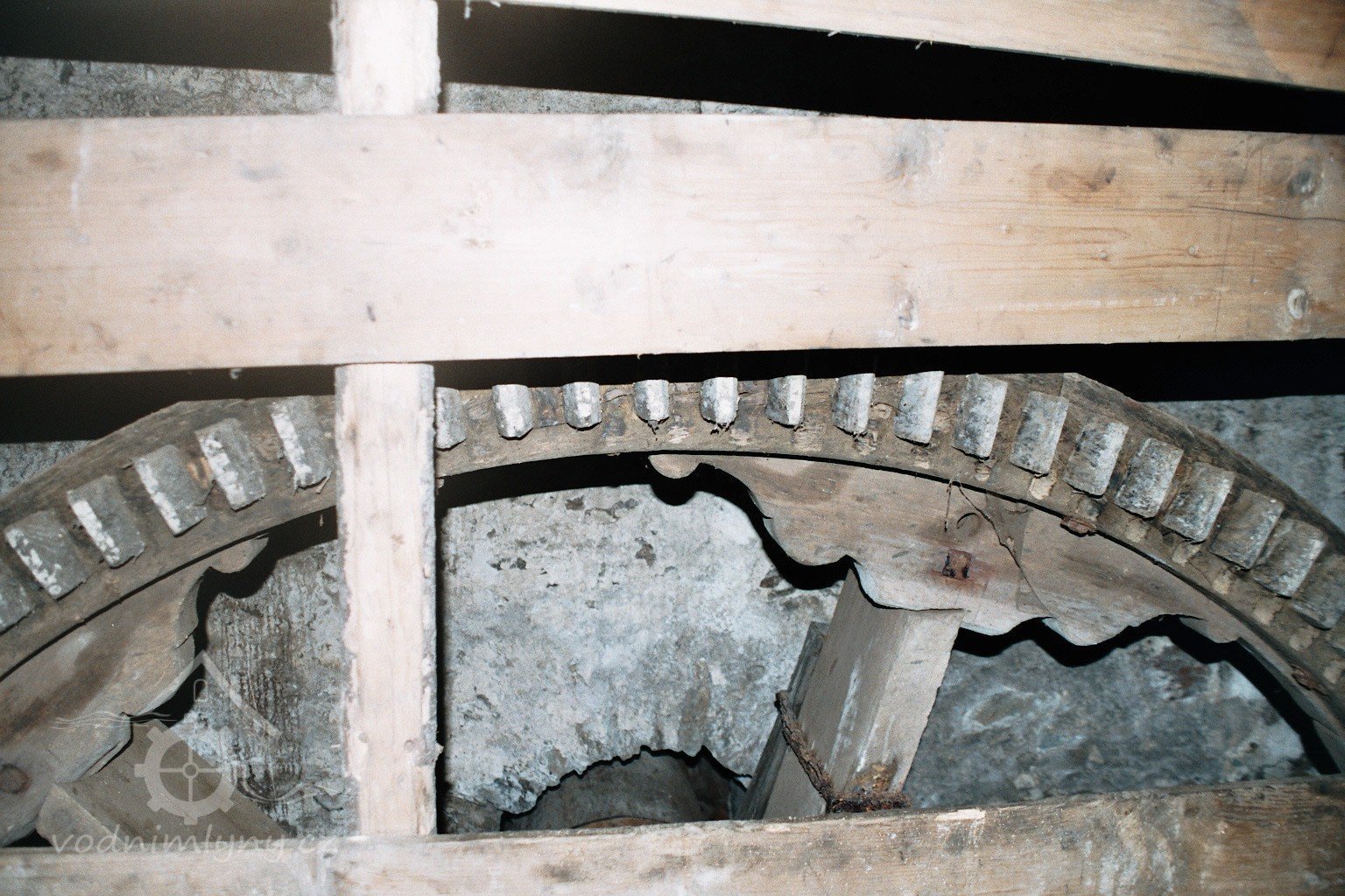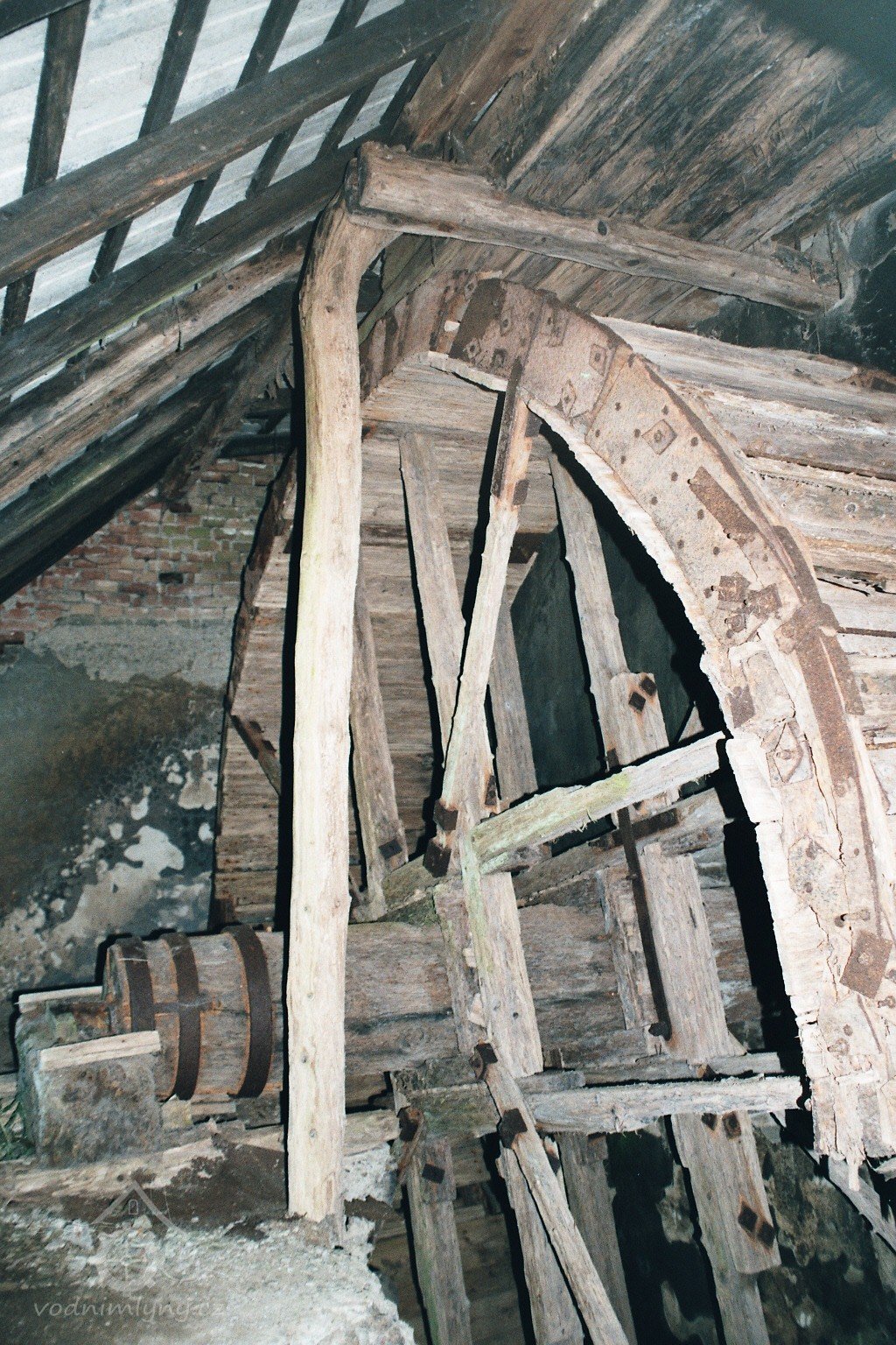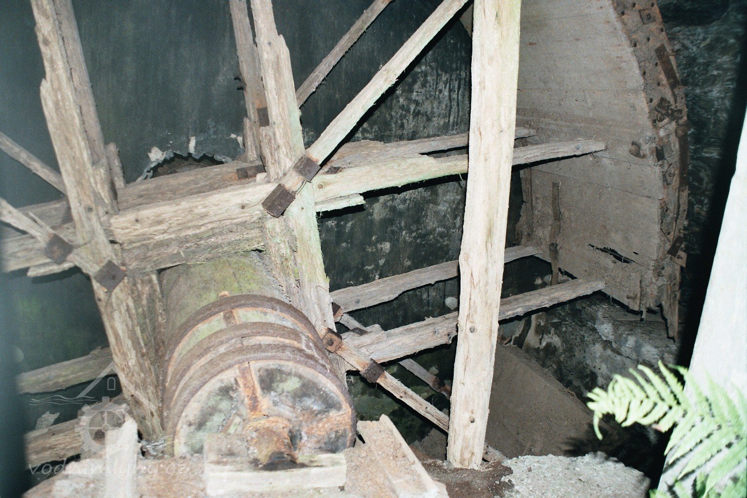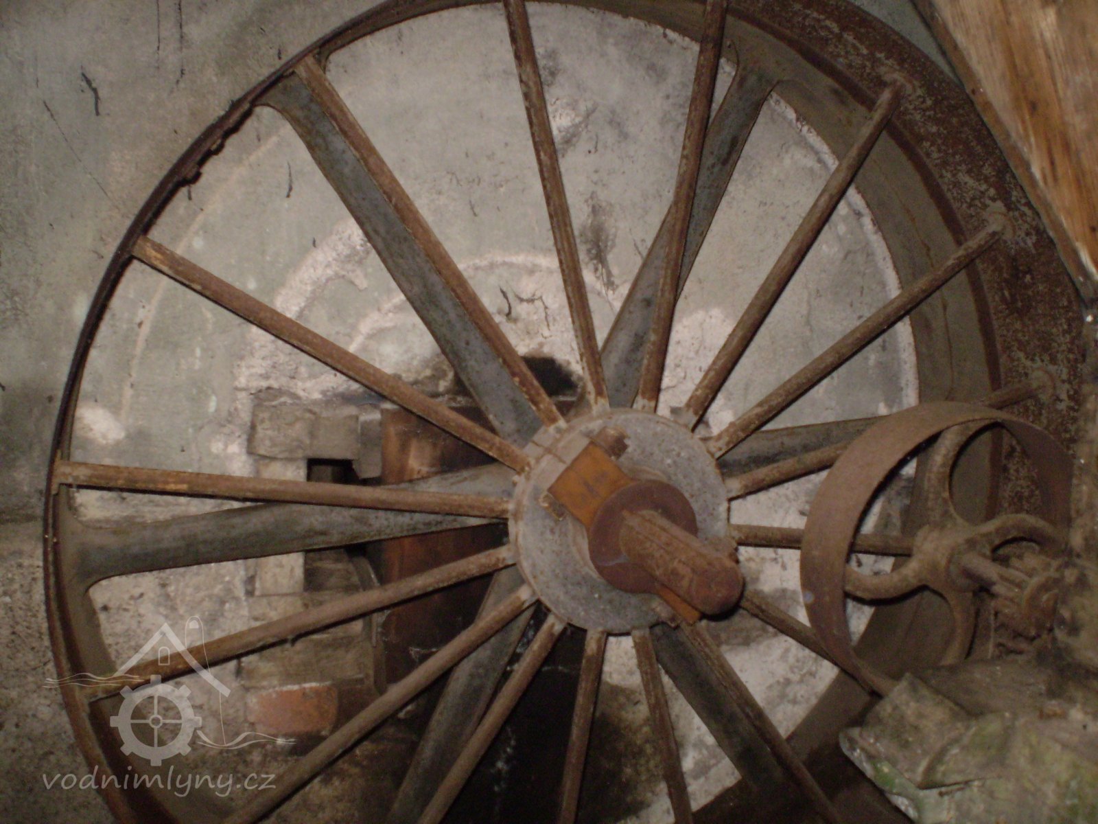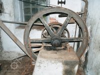 transmise pohonu mlýna, 2008, © David Veverka, (Prvky na obrázku: transmise, řemenice, převody)