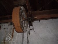 velká dřevěná řemenice, 2008, © David Veverka, (Prvky na obrázku: transmise, řemenice, převody)