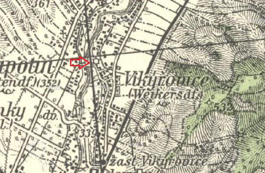 Mlýn se nacházel v centru obce Vikýřovice.